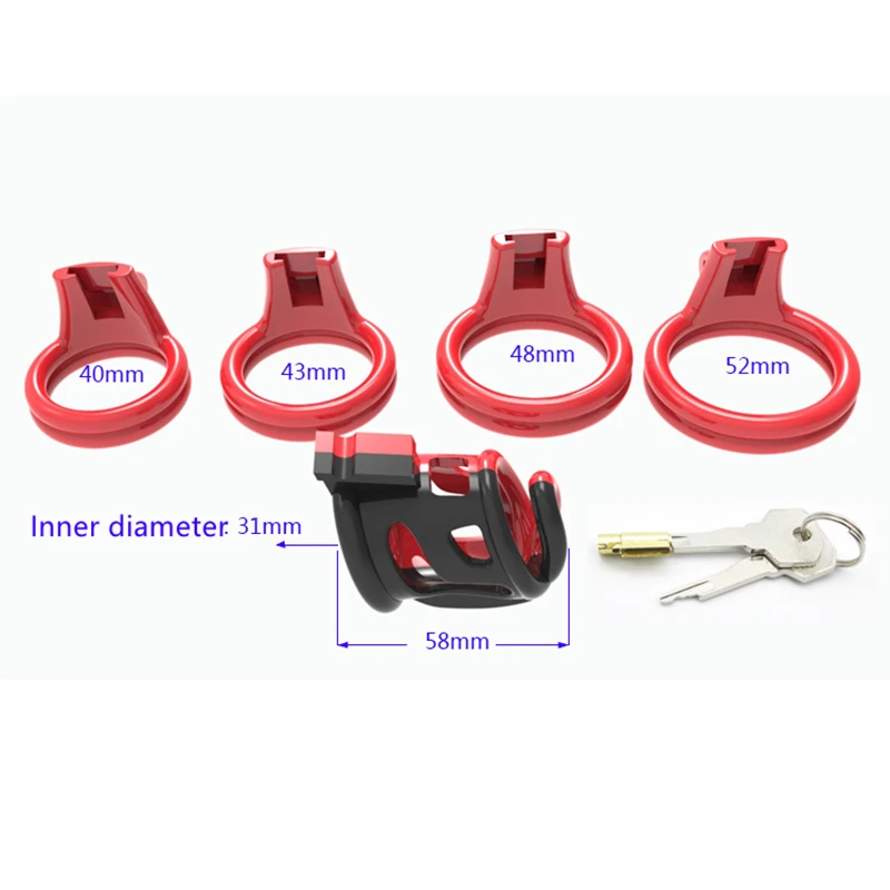 One set includes:1*Cage, 4* Different sizes rings, 1* belt,1*Lock and 2*keys.