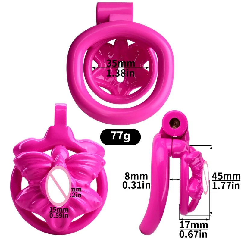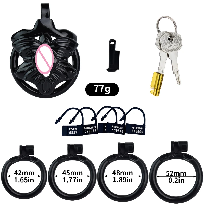 New Butterfly Simulated Vagina Chastity Lock Disguised Lower Body Chastity Device Penis Abstinence Cock Cage with 4 Rings 18+